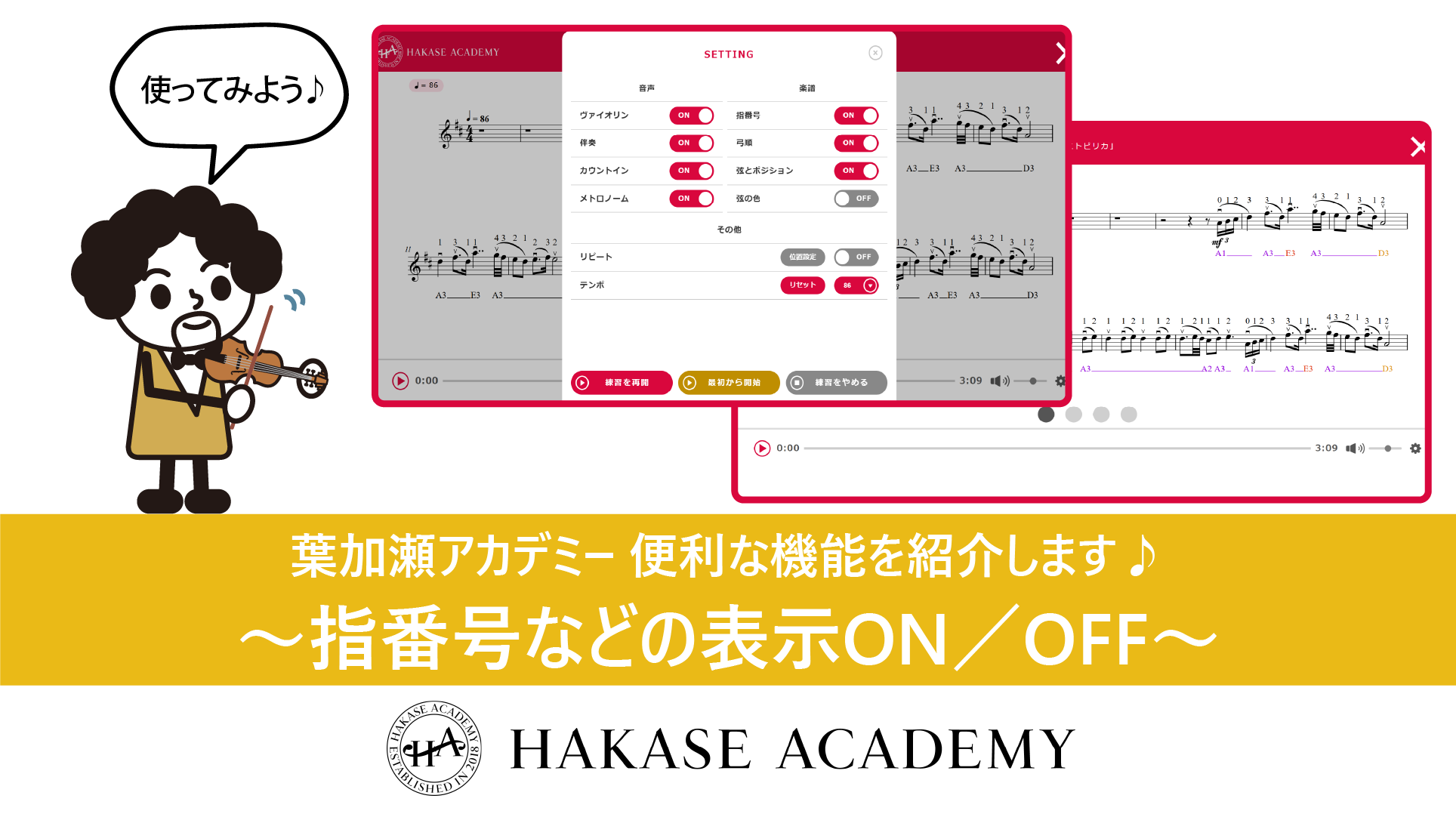 必ずバイオリンの音をOffにしてから伴奏音源を流してメロディーのリズムを叩きます。