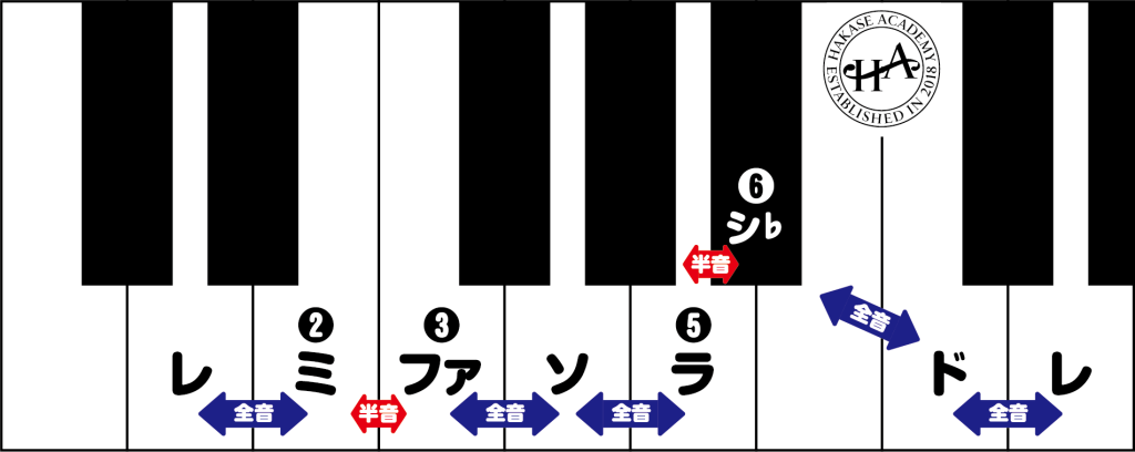 半音の箇所は必ず2音目→3音目、5音目→6音目と決まっています。