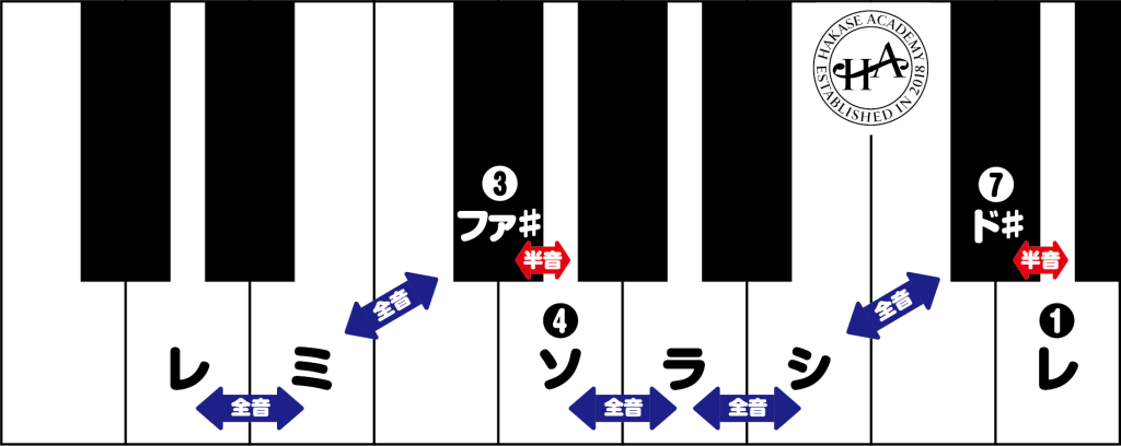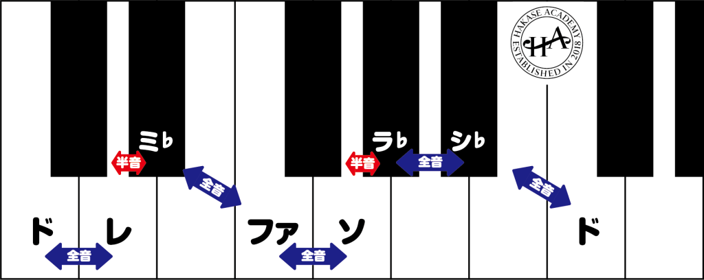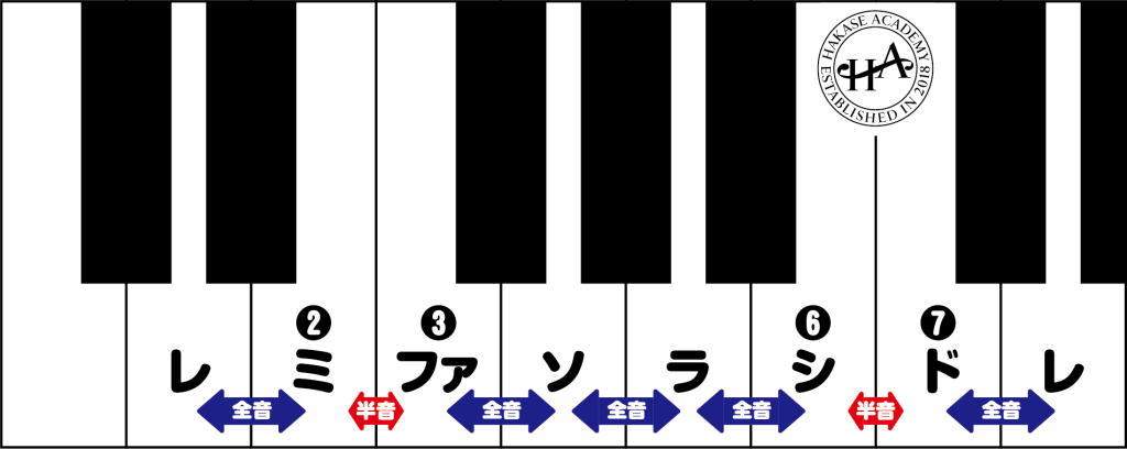 半音の箇所は必ず3音目→4音目、7音目→1音目と決まっています。